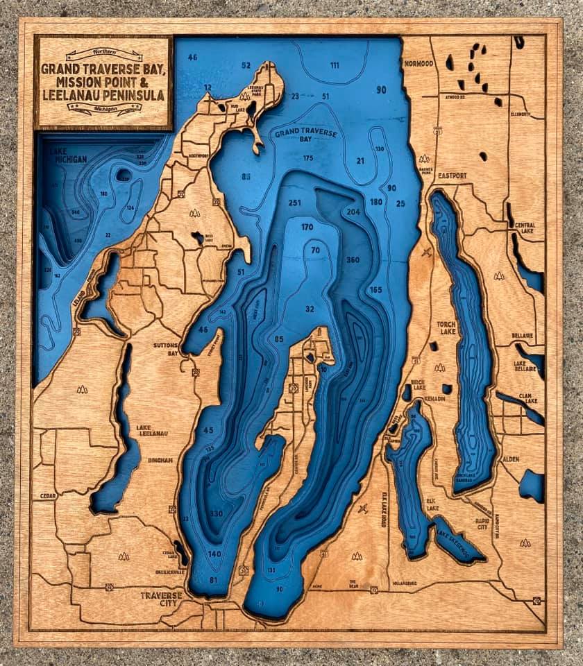 Grand Traverse Bay Lake Michigan, MI 3D Wood Topo Map