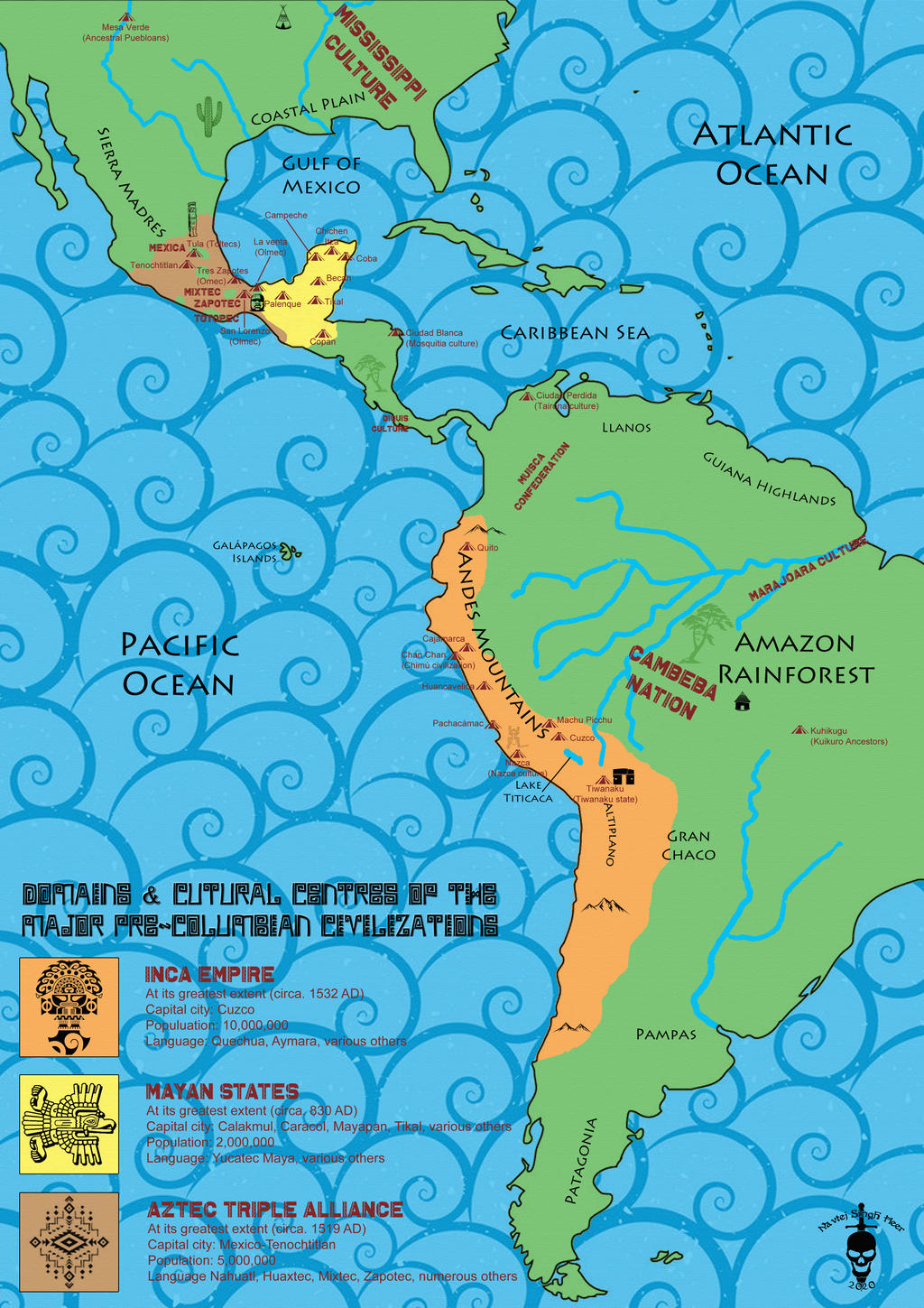 Pre Columbian Civilizations Map Pre Columbian Civilizations map by hellbat on DeviantArt: The pre-Columbian era means the history and prehistory of the Americas before there were important European influences on the American continent. The word pre-Columbian refers to the era before . The Inca Empire once stretched 2,500 miles along the Andes of western South America. At its height, it was one of the largest empires in the world and, in geographic terms, the most extensive polity .